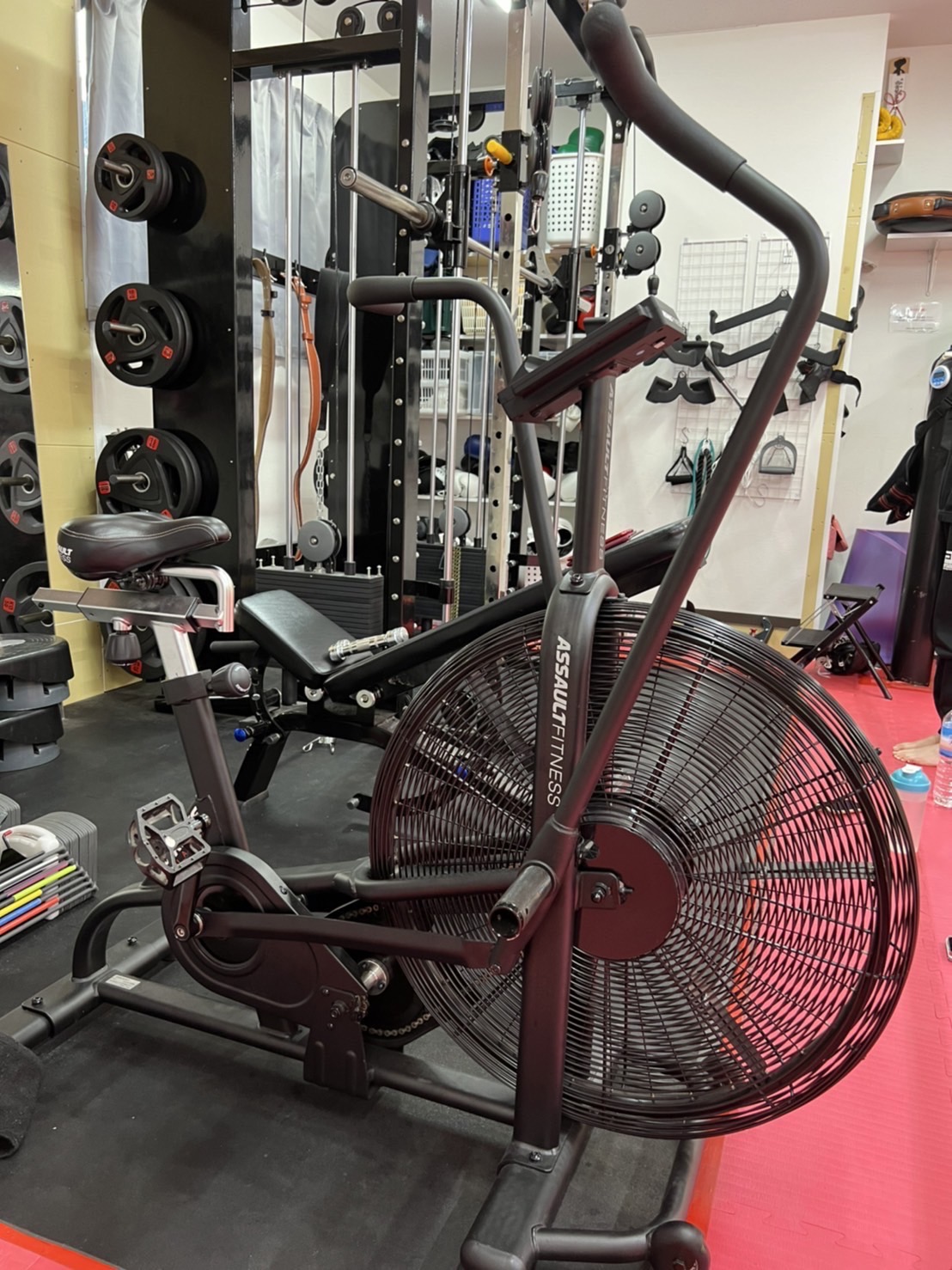 エアロバイクでは足だけを使用した運動になりますが、アサルトバイクではクロスランナーの様にハンドルがあり、腕も一緒に使用する事で、時間当たりの消費カロリーを向上させます。 またHIITトレーニングの様にインターバルから一気に全速力へ始動する際も、このハンドルを使う事でスムーズにMAXスピードへ入る事ができます。しっかり腕を振り、足を踏み込む事で、通常のエアロバイクでは得られない様な体と心肺への負荷が得られるためダイエットにも効果的です。